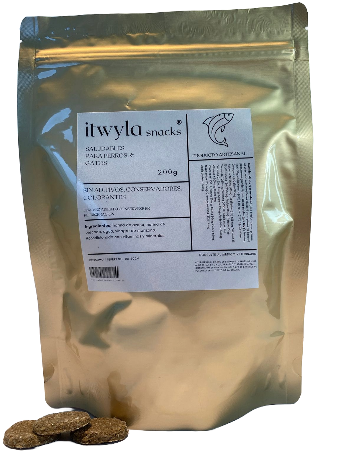 Utilizamos solo los mejores ingredientes para tu querida mascota. Nuestra línea de snacks ecológicos para mascotas es completamente natural, sin productos químicos o sintéticos, todos nuestros ingredientes son libres de gluten y son de la mejor calidad. Todas nuestras recetas se basan en proteínas de pescado. A medida que cada vez más personas disfrutan de actividades con sus mascotas, como hacer ejercicio, compras y vacaciones, nuestros snacks itwyla se convierten en una opción práctica y completa que facilita la vida diaria con nuestros adorables compañeros peludos.